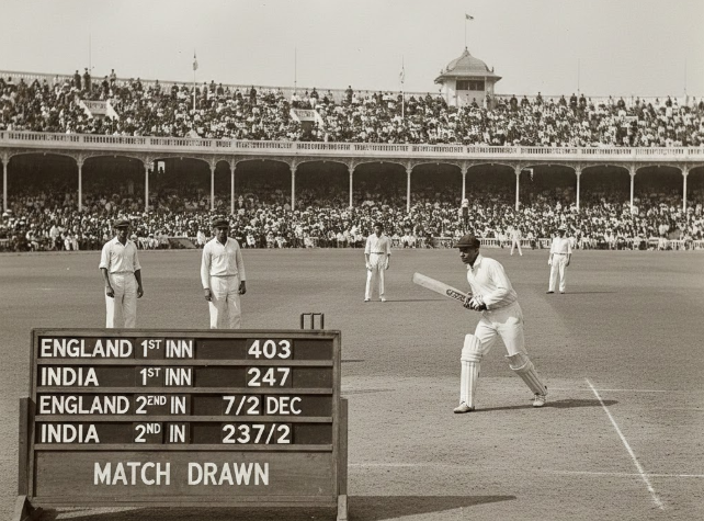 In response, India battled hard but were dismissed for 247, conceding a first-innings lead of 156 runs. Debutant wicket-keeper Dilawar Hussain was the top scorer with a determined 59. England’s attack was led by Hedley Verity and Nobby Clark, who both took four wickets each.