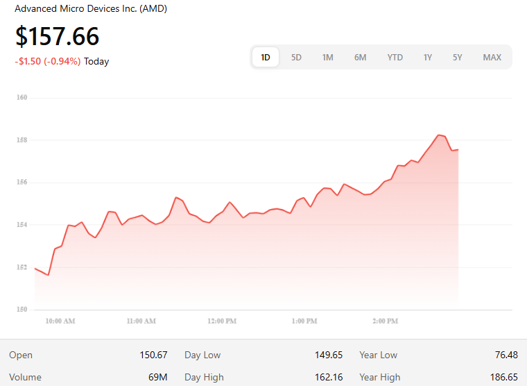 AMD Company stock dropped by 2% when news came out that Nvidia invested $5 billion in Intel Company.
